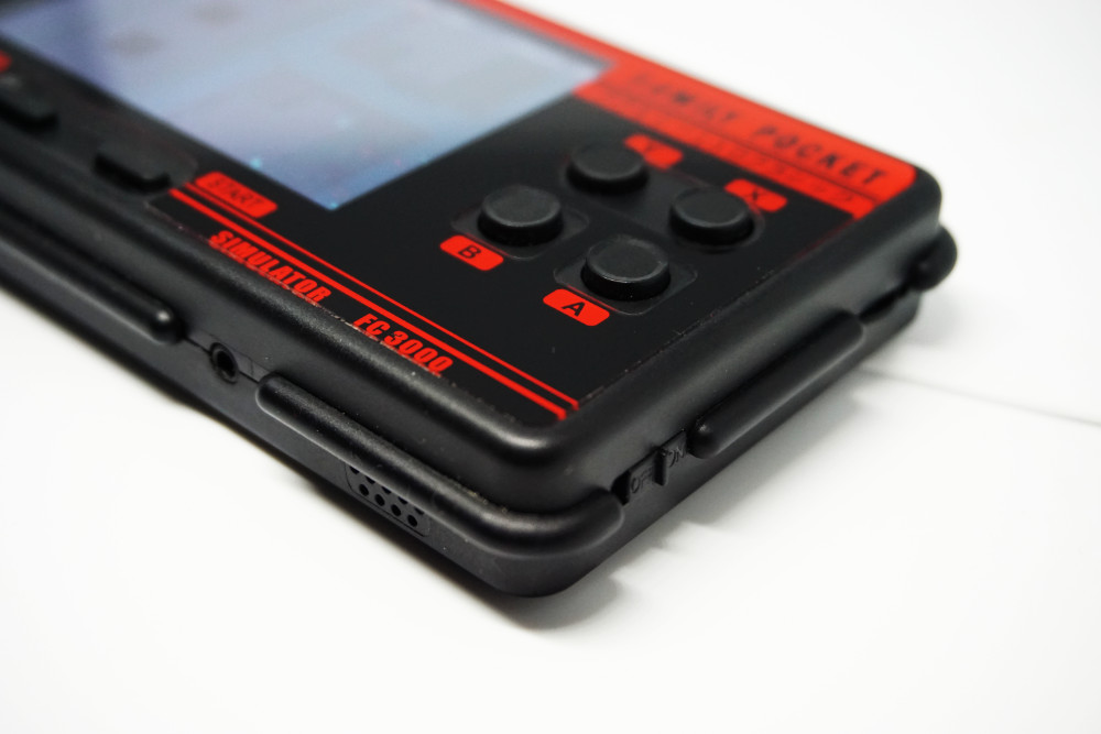 Let’s not set expectations too high, the FC3000 costs about $20 shipped after all. The handheld is fairly light and plasticy, but at the same time it is very sturdy in the hand. It doesn’t creak or flex, but it does have a kind of hollow feel to it. Part of that is probably due to the addition of the clip on back cover which hides the battery and cartridge.