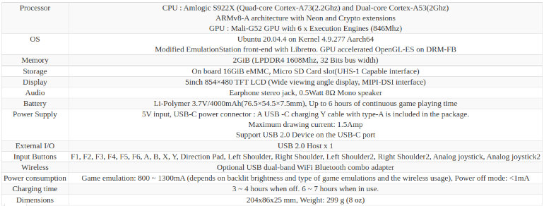 ODROID-GO ULTRA SPECS